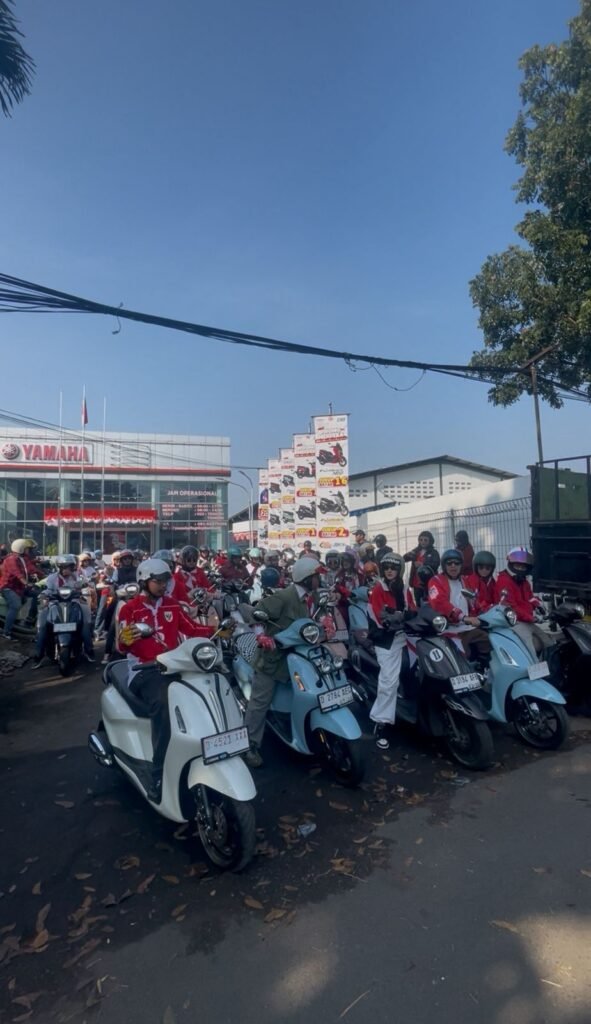 Yang bikin makin spesial, semua peserta kompak pake outfit merah putih dengan gaya kekinian. Jadi bukan cuma city touring, tapi juga kayak parade fashion rolling bareng.